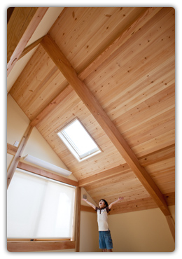 最高品質の無垢材を使用し、家族が健康で心安らぎ、長持ちする本物の家づくりに積極的に取り組んでいます。木造住宅は、木の長所が活きている無垢材を使用するのが、優れています。自然素材をふんだんに取り入れた家は、調湿作用や断熱効果にも優れており、心地良い室内環境を生み出し、安らぎと癒しを与えてくれます。夏は涼しく冬は暖かで、裸足で駆け出したくなる無垢のフローリングに高い天井、太くたくましい梁のある空間は、住む人の心を豊かにします。